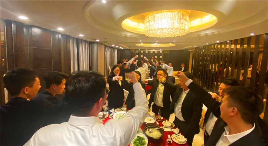 會后公司進行了聚餐活動,大家紛紛把酒言歡并祝福彼此2022年取得更好的成績,祝福公司在2022年有更大的提升。